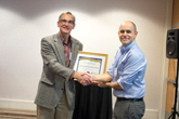 Richard Gelderman receiving Homer L. Dodge Citation for Distinguished Service to AAPTRichard Gelderman, Western Kentucky University, is the director of the Hardin Planetarium. He has been instrumental in increasing the vitality, scope, and effectiveness of the Space Science and Astronomy Committee. Gelderman has also contributed to many other committees and activities in his many years of service to AAPT. In particular, he has served on the Membership and Benefits Committee, the Nominating Committee, the Programs Committee, Meetings Committee and as chair of the Science Education for the Public Committee.