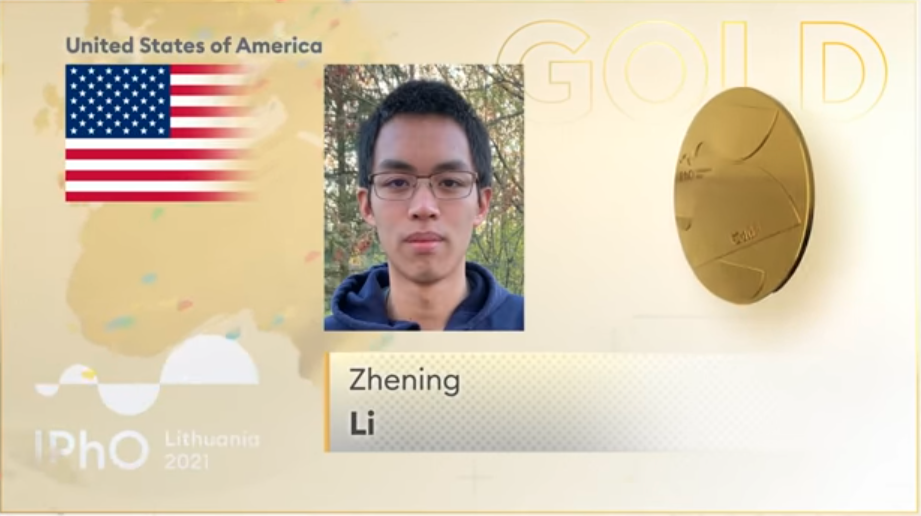 The U.S. Physics team took home five gold medals at the 51st International Physics Olympiad hosted in Vilnius, Lithuania from July 17-24, 2021. The members of the virtual team are: