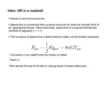 Pullin began the workshop with a succinct account of GR. He